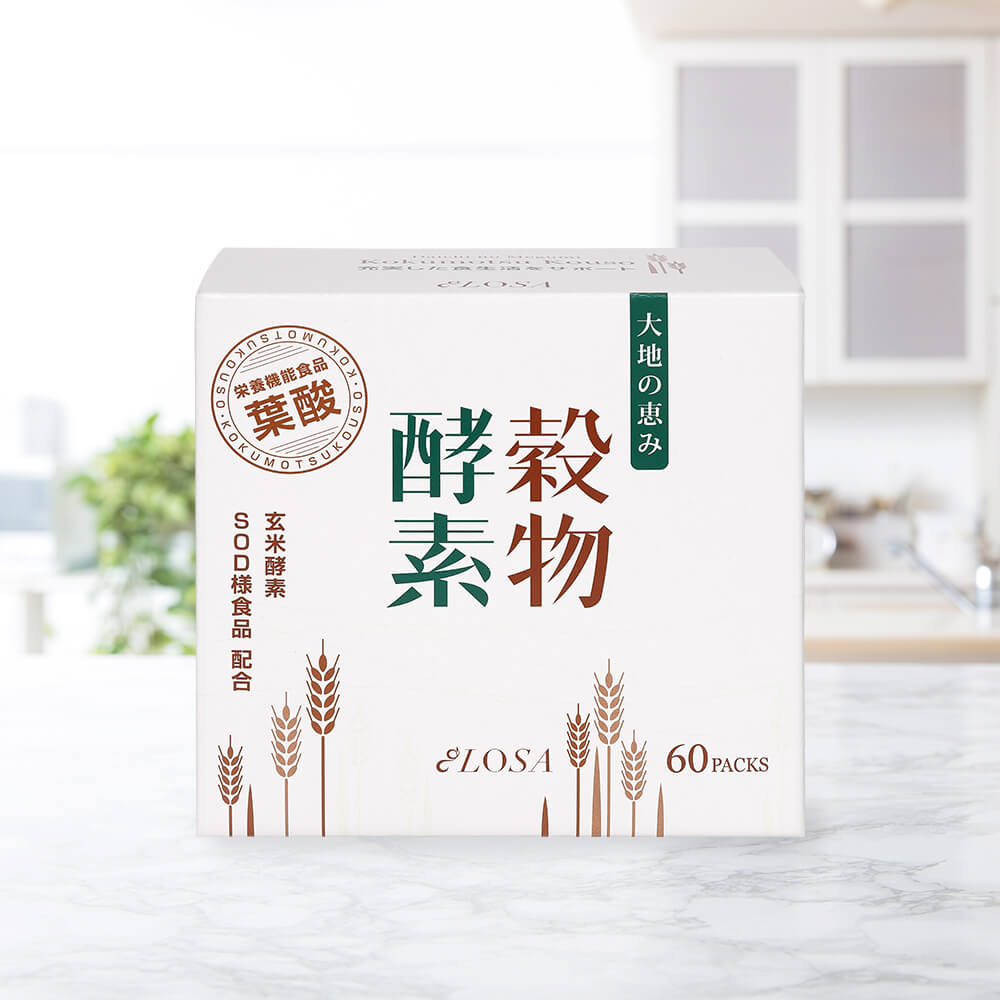 小麦ふすまなどを麹菌で発酵させた植物性の穀物発酵エキス。炭水化物・タンパク質・脂質に関わる5種の酵素活性を含む特許原料です。 SOD様食品 大豆、大麦、小麦胚芽、緑茶、ゆず、だいだいを麹で発酵。伝統的に「SOD様成分」と呼ばれる成分を含みます。 玄米酵素 玄米はビタミン、ミネラル、食物繊維などを含む食材として知られています。麹で発酵させることで、日々の生活に取り入れやすい形に加工しています。 葉酸 レバーや緑黄色野菜などに多く含まれる水溶性ビタミンの一つ。妊娠前後に特に意識して摂るとよい栄養素として知られています。通常の食事だけでは不足しがちなため、サプリメントでの活用もおすすめされています。 【召し上がり方】 栄養補助食品として1日1包を目安に、水またはぬるま湯で召し上がりください。